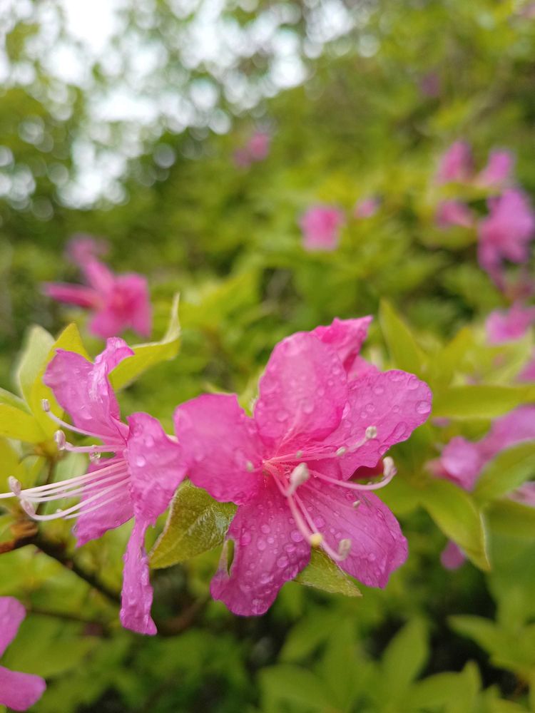 同じ色のミツバツツジがたくさん咲いてるので、5枚の葉🌿を見ないとわからないんです。