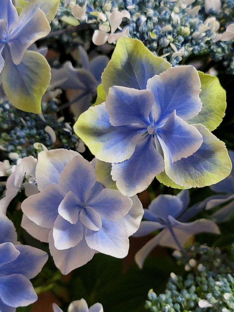 ブルー💙お花 中の両性花が白いお花 咲き始めてます🤍