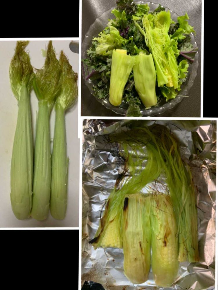 ④白ボタン丼 ⑤有機農家さんを紹介して頂き、ヤングコーンを調理・下処理とケールサラダとホイル焼き 甘かったです。他に天ぷらもしました