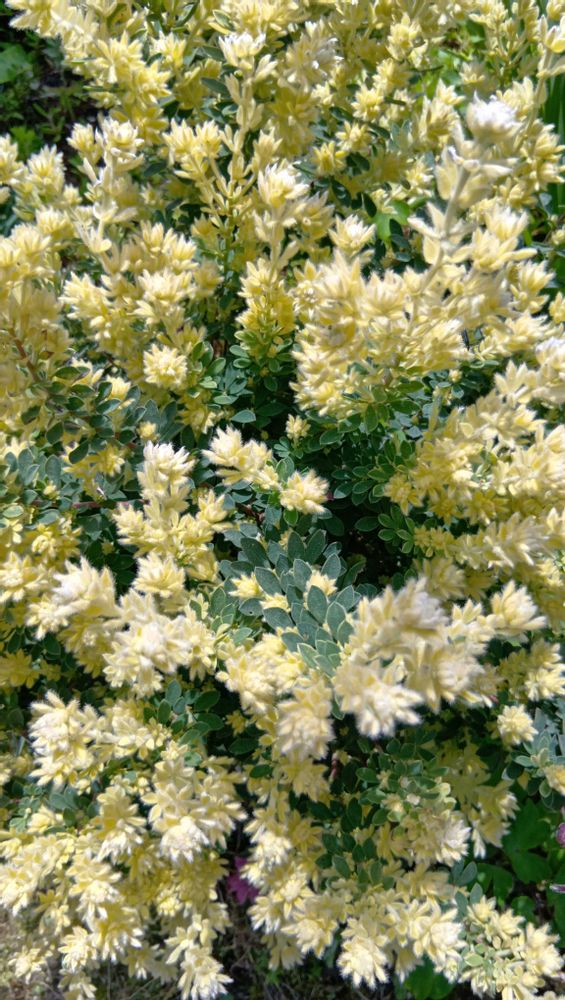 庭植えのロータスブリムストーンさん、低木さんです。
