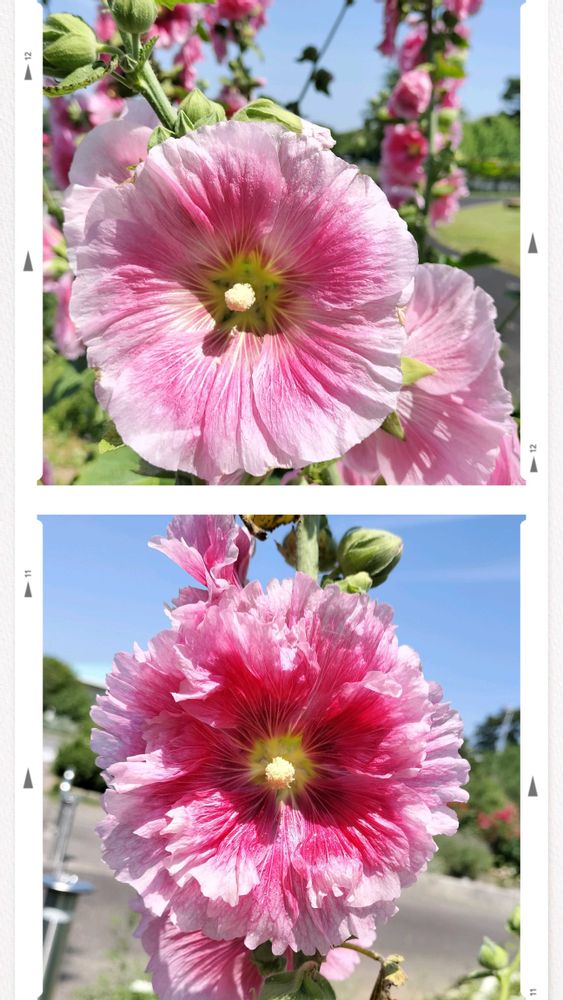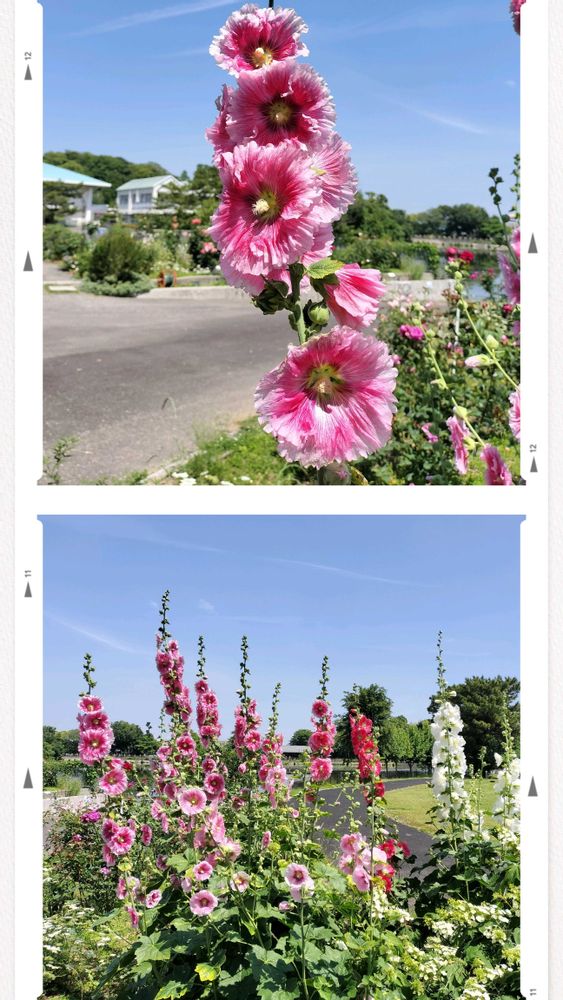 先日、🚙からタチアオイが咲いているのを見ました。随分と上の方まで咲いていてビックリでした。