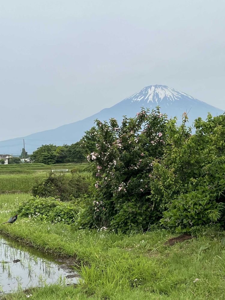 昨日と今朝の富士山と大谷空木の花、雄の雉