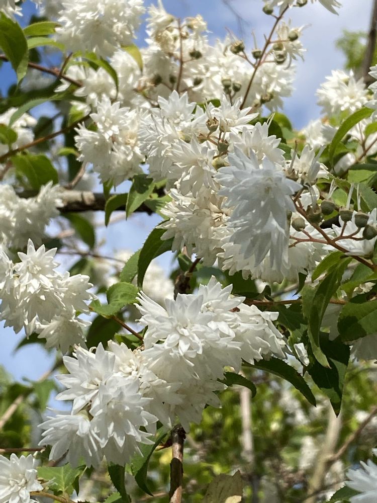 近所に白い花が咲いてるの見つけて近づいたら八重咲きでした🤍ྀི