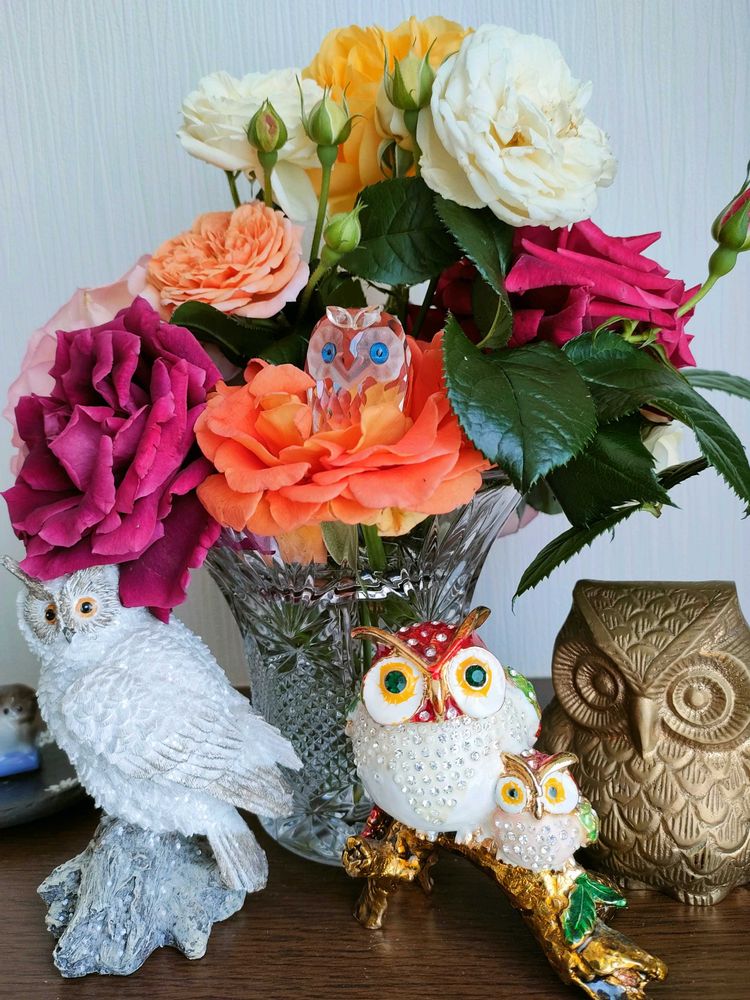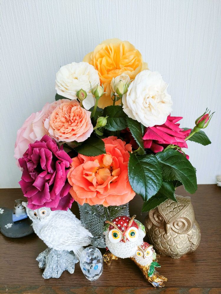 1️⃣庭の薔薇が一番瑞々しく咲き誇ってた時に、🦉全員集合📣で記念写真を撮りました🌈💓