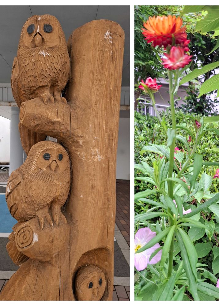 木彫りの🦉さん、なかなか良い表情ですね♪