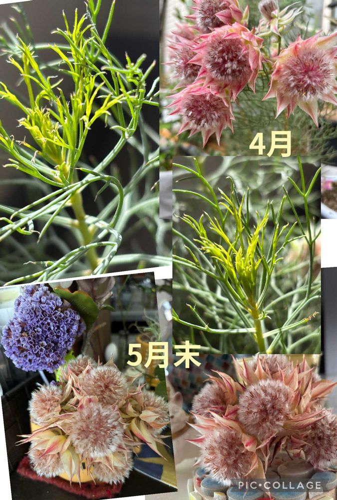 4月半ばに買ったプロテアフローラさん。すっかりドライになり花だけお部屋へ…新しい葉が綺麗です