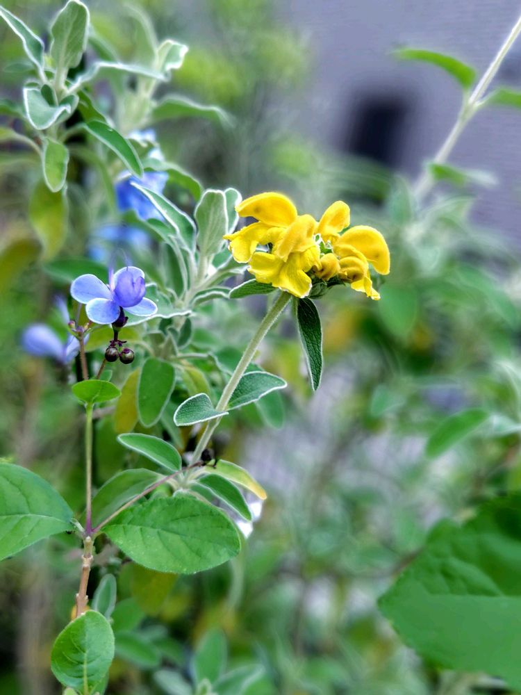 咲き始めのブルーウィング💙に咲き終わりかけたエルサレムセージ💛がそっと寄り添うように…🥰