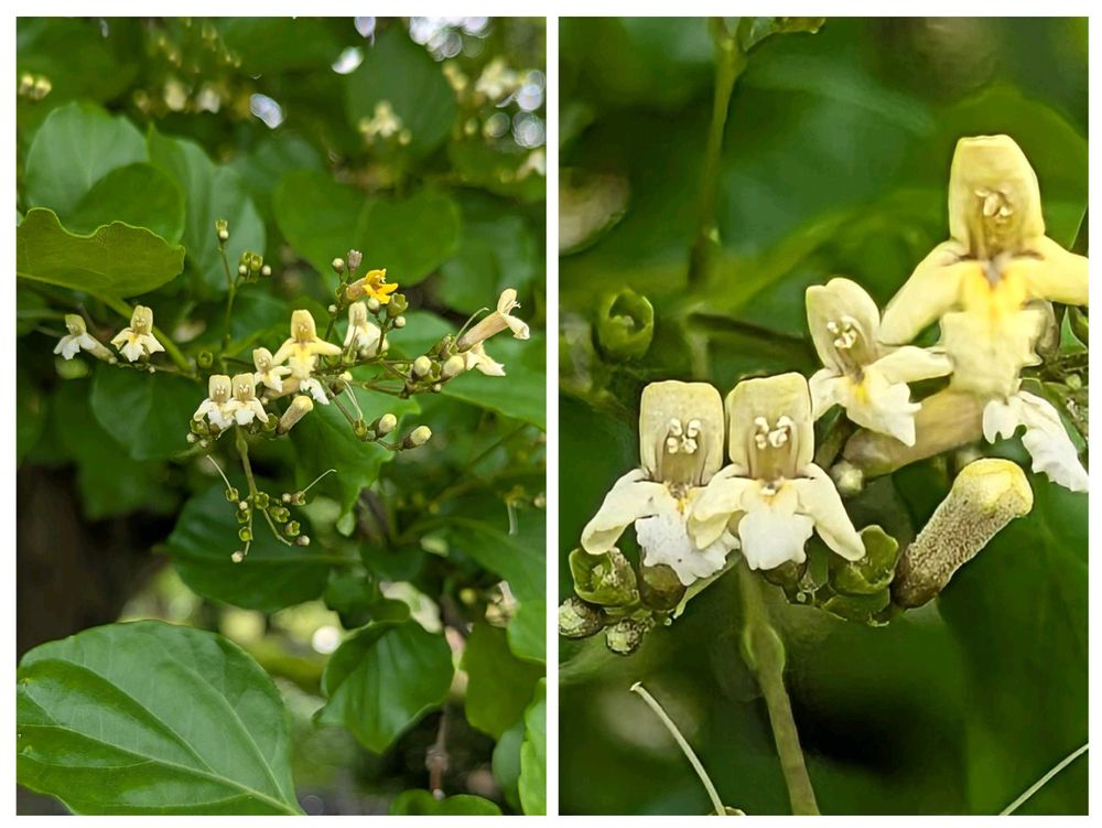 花は白からクリーム色へ変化する。葉に臭気があるが花は良い香りです。
