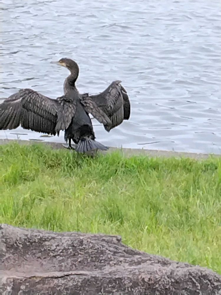 カワウの羽干し、私も川で見かけます!カワウって大きくて、ちょっと恐竜🦕みたいに感じます🦖🤭初めて見た時は怖かったわ😅