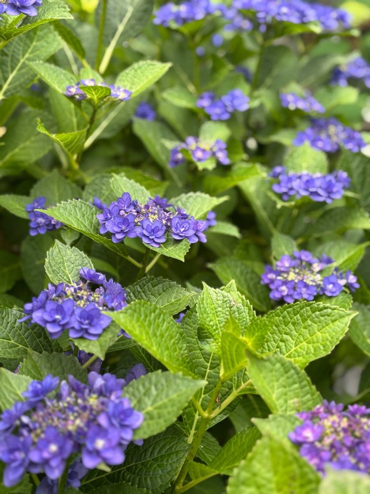 Hydrangea Himiko (purple) is in full bloom.