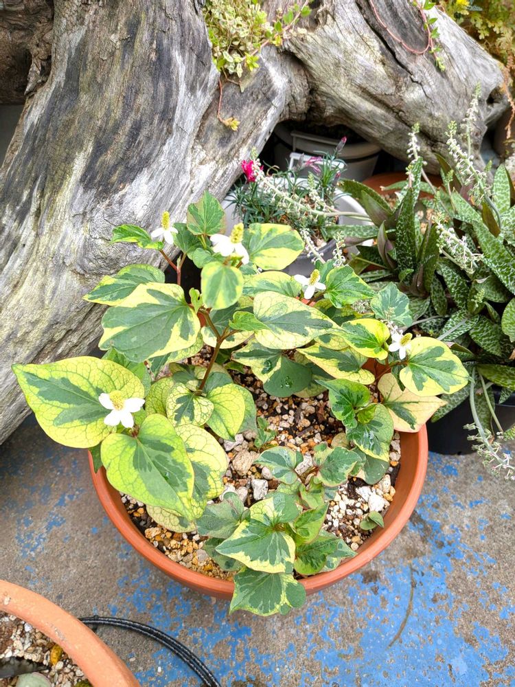 ちょっと弱めで、きっと緑のドクダミちゃんと寄せ植えしたら消えちゃいそうです🤣