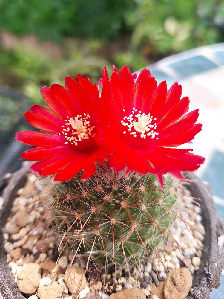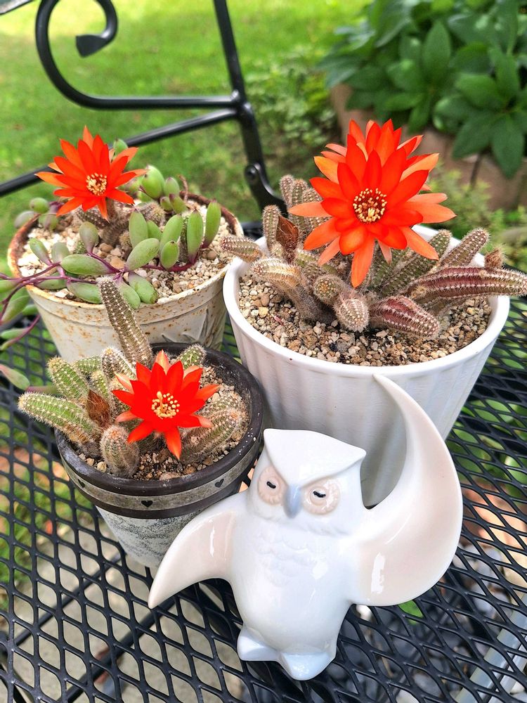 ①あちこちに置いてあった、紐サボテン白檀のお花が咲きました🎵😄