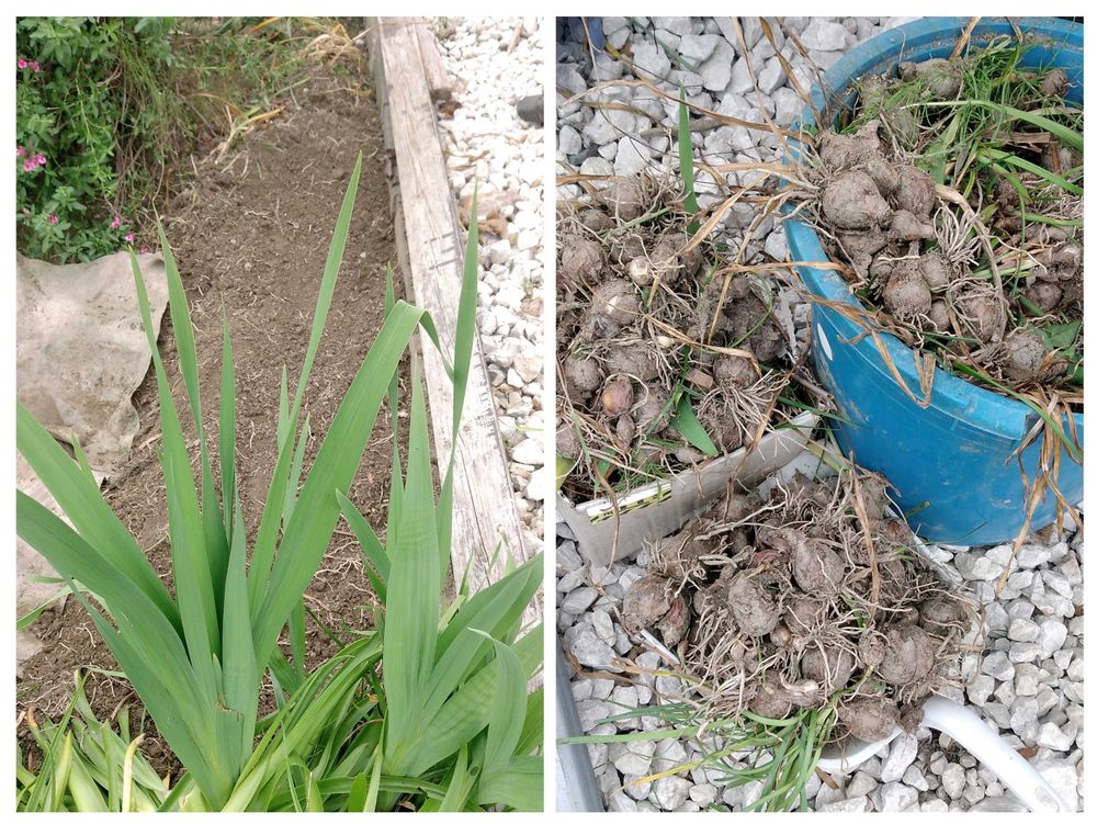 何段にもなっていて 掘れるだけ掘りましたが まだ土の中には大量に埋まっています 少しは間引かないと花が咲かないんで 他の草と一緒に今の時期に抜いて捨ててます