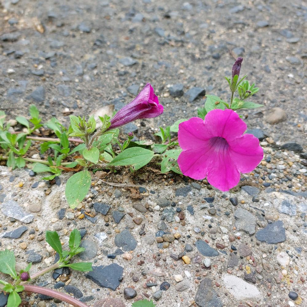 コンクリートの隙間からのペチュニア🌸ど根性で、咲き続けてね