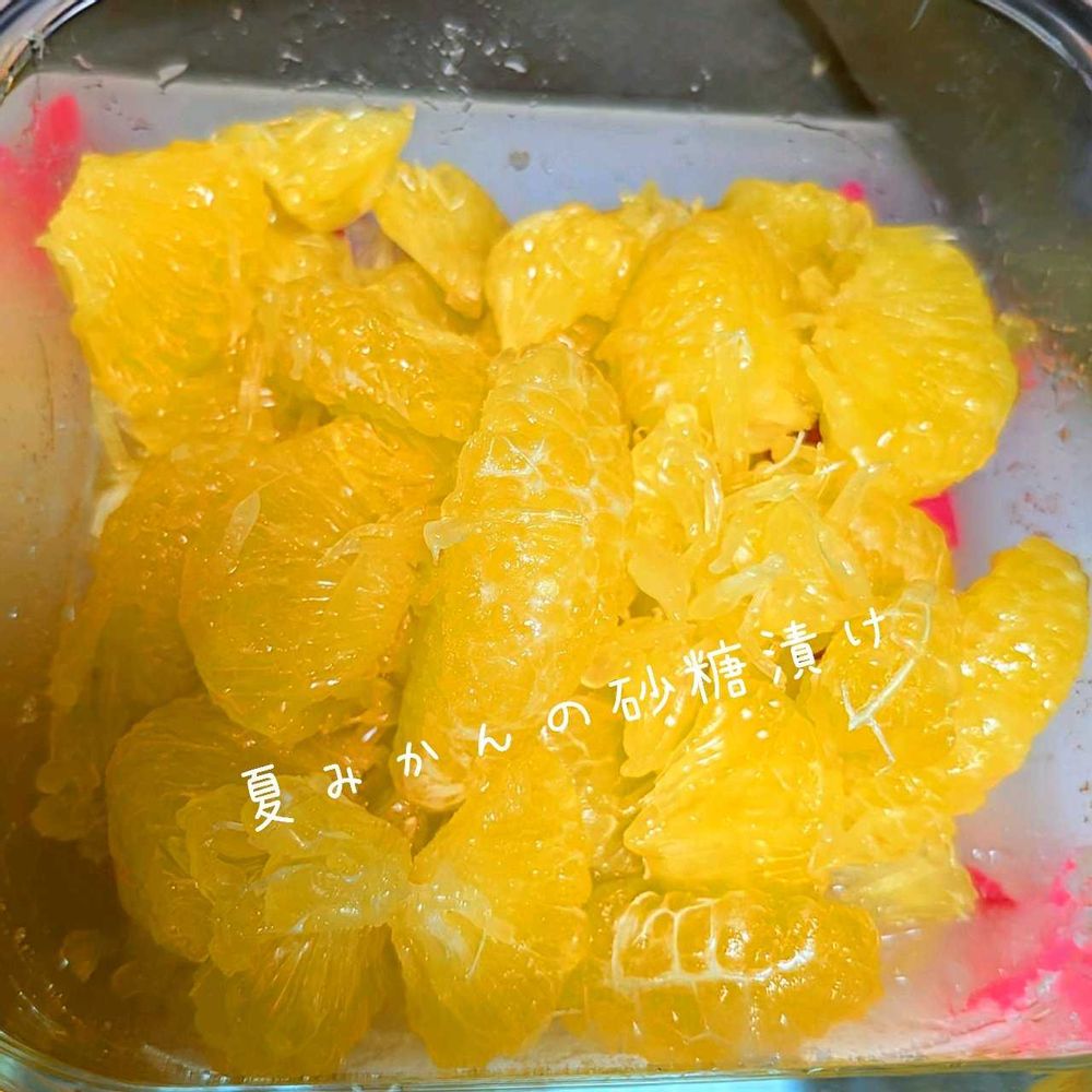 夏みかんは酸っぱいので砂糖漬けに皮をむいたらいい香りでお風呂に入れました