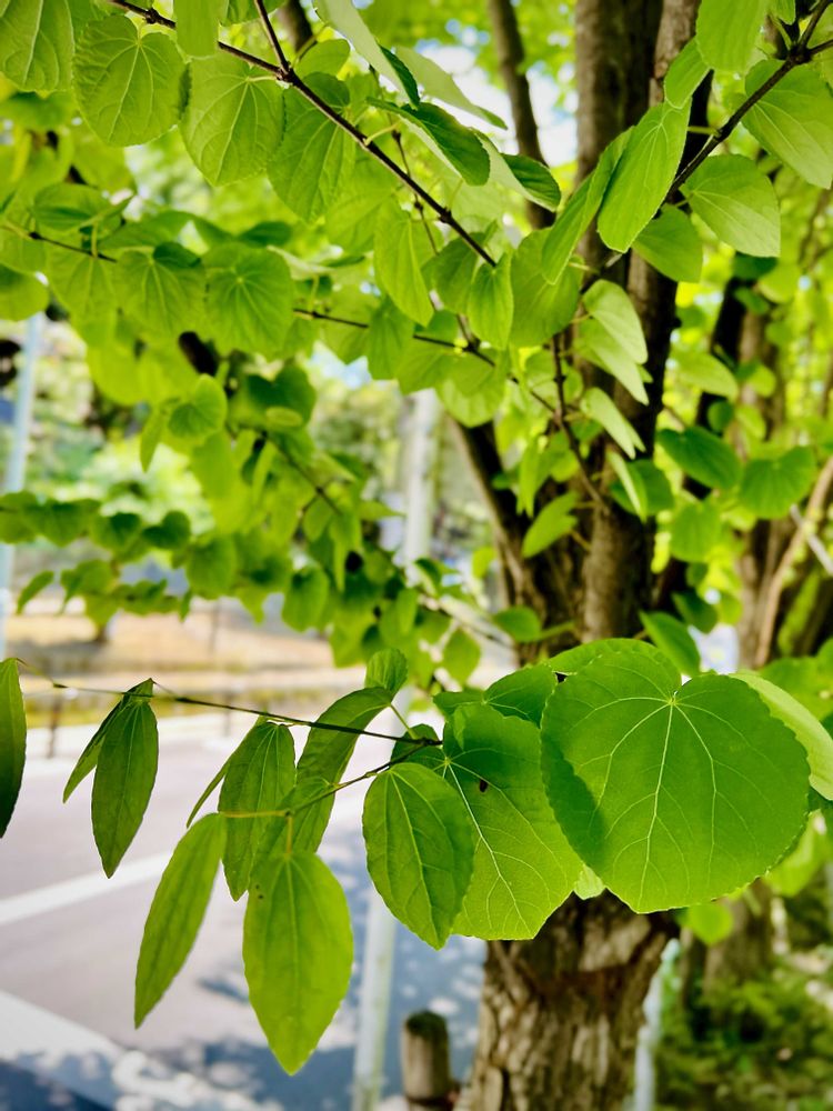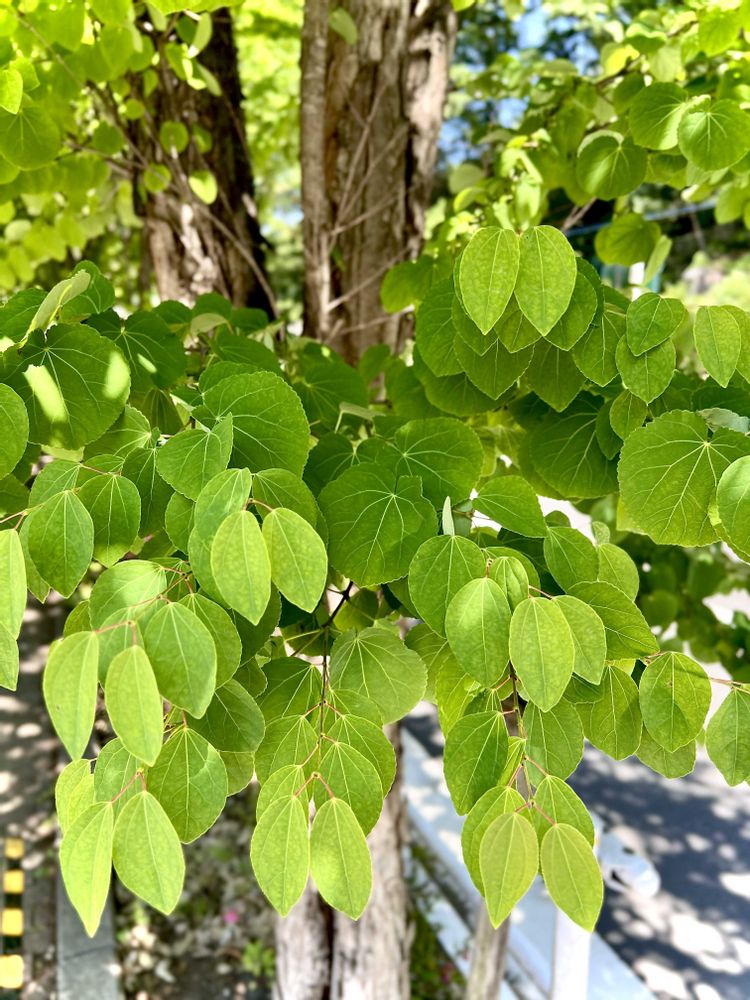 ハート形の葉をたくさん付けて、木陰を作ってくれます。