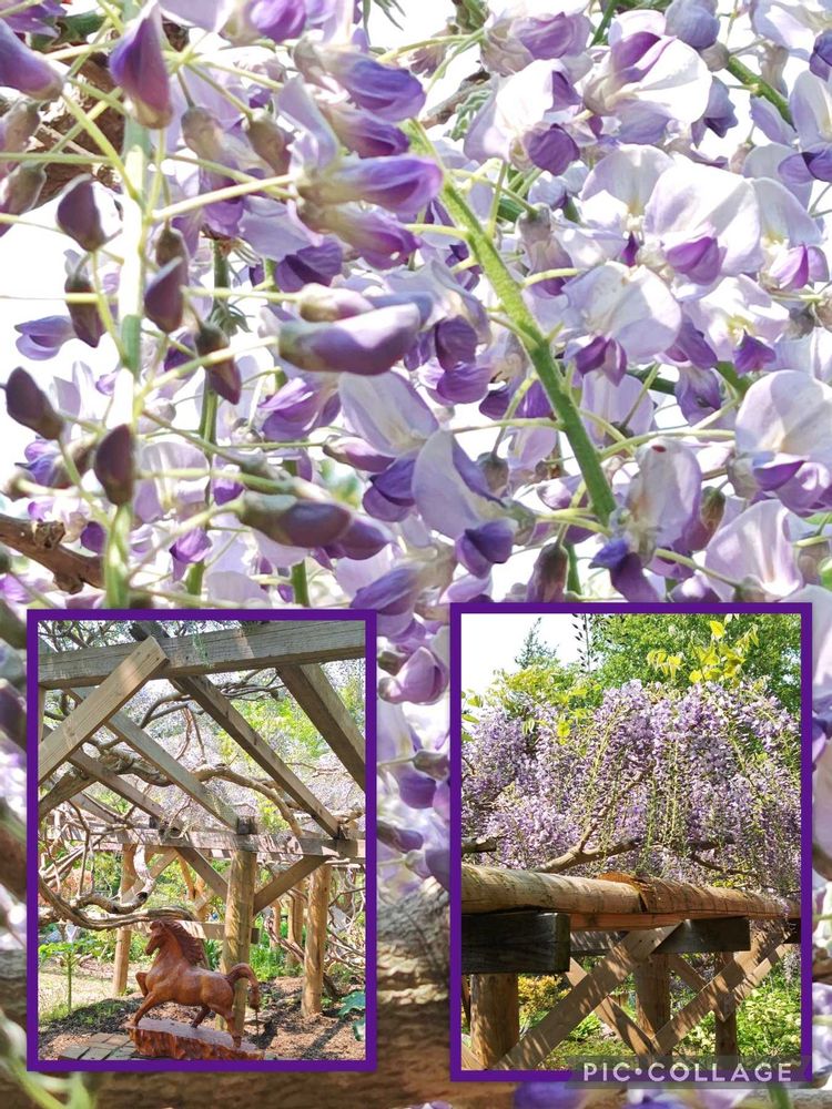 建設会社だけあり、藤棚はもちろん立派、ちょっと休憩出来る椅子も丸太で作られていたり、素敵でした