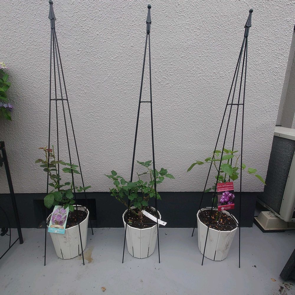 ③バラのお世話にチャレンジ🌹左からコフレ、スフレ、ブルドゥパルファム✨さぁうまくいくかな?🤭💦