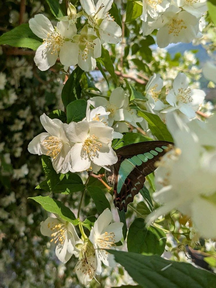 満開のウツギにアオスジアゲハが沢山飛び交っていました♫