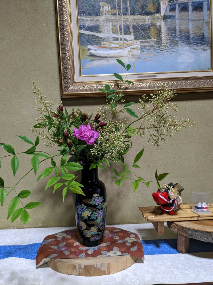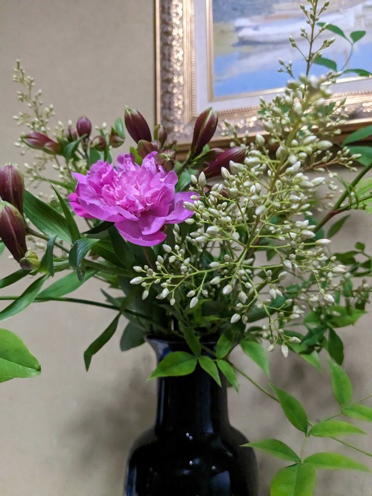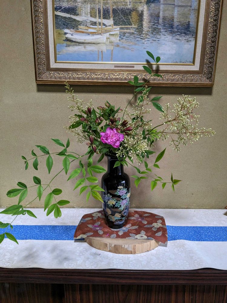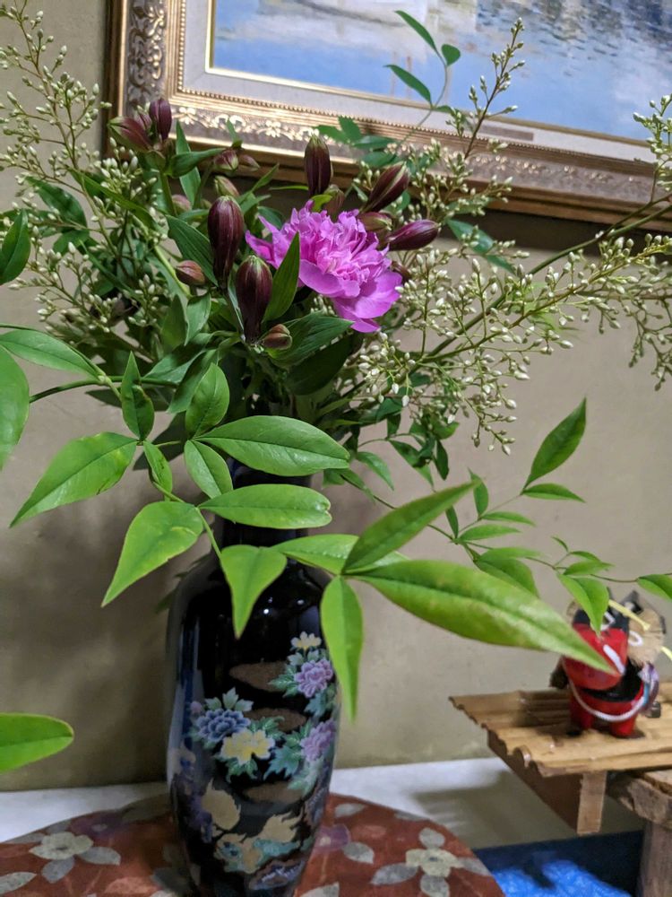👍まだ蕾のアリストロメリアと最後の芍薬とで活けて見ました👍💞