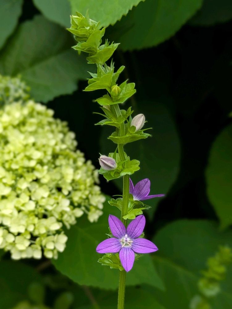 アナベルの根元で咲いてます💜