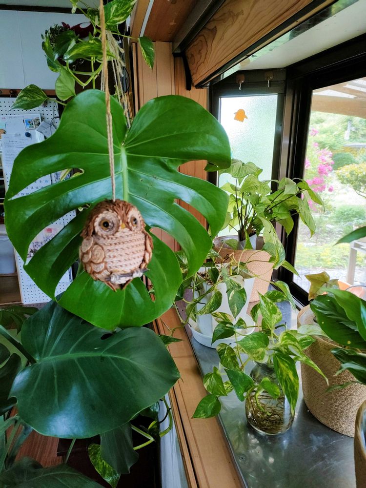 今年始めてのモンステラの新芽が出ました〜👋🦉