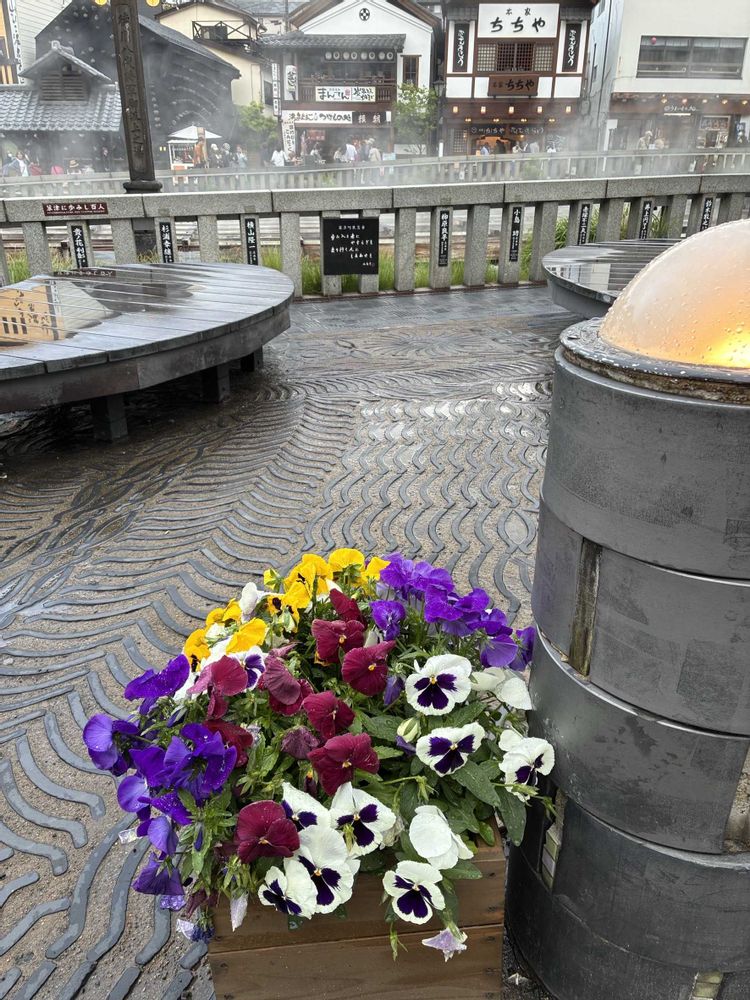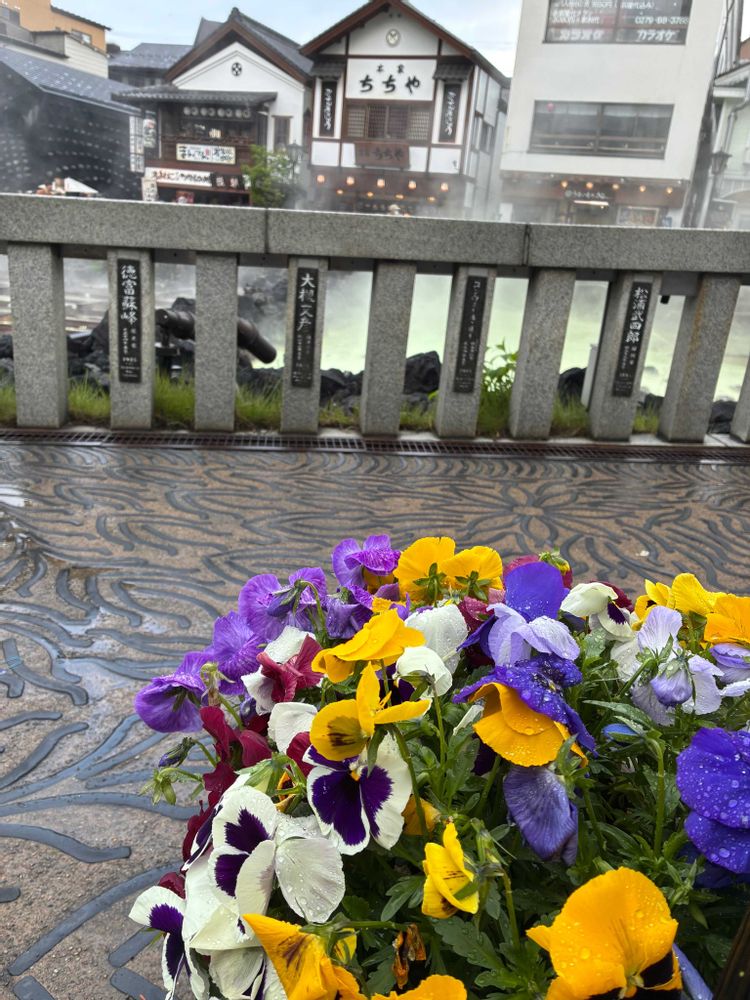 湯畑の周りにパンジーちゃんの寄せ植えがたくさんありました✌️