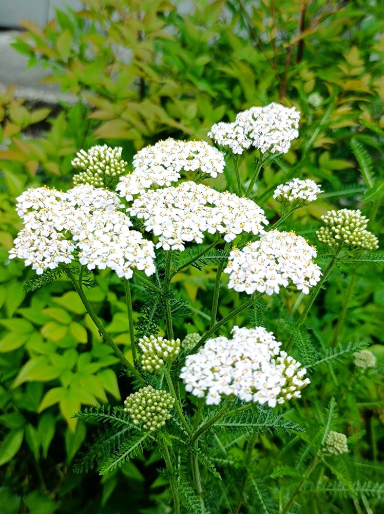 こんばんは☺️もうすぐ梅雨入りしそうな雨が今日は降っています☔昔、北海道へ旅行した時に道端で見たノコギリソウ💮今年も我が家で咲いてくれました😍💕2枚目は山の入口のネギに蝶が😳思わずパチリ📸3枚目はネギの近くに何故か突如ホタルブクロが咲いていました🤭可愛らしくて引かずに眺めさせてもらってます💓