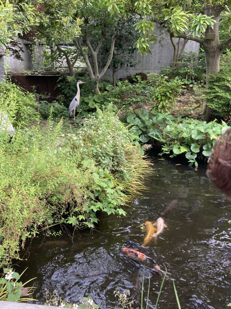 ②③緑化センターの鯉が泳いでる池に アオサギが佇んでいました