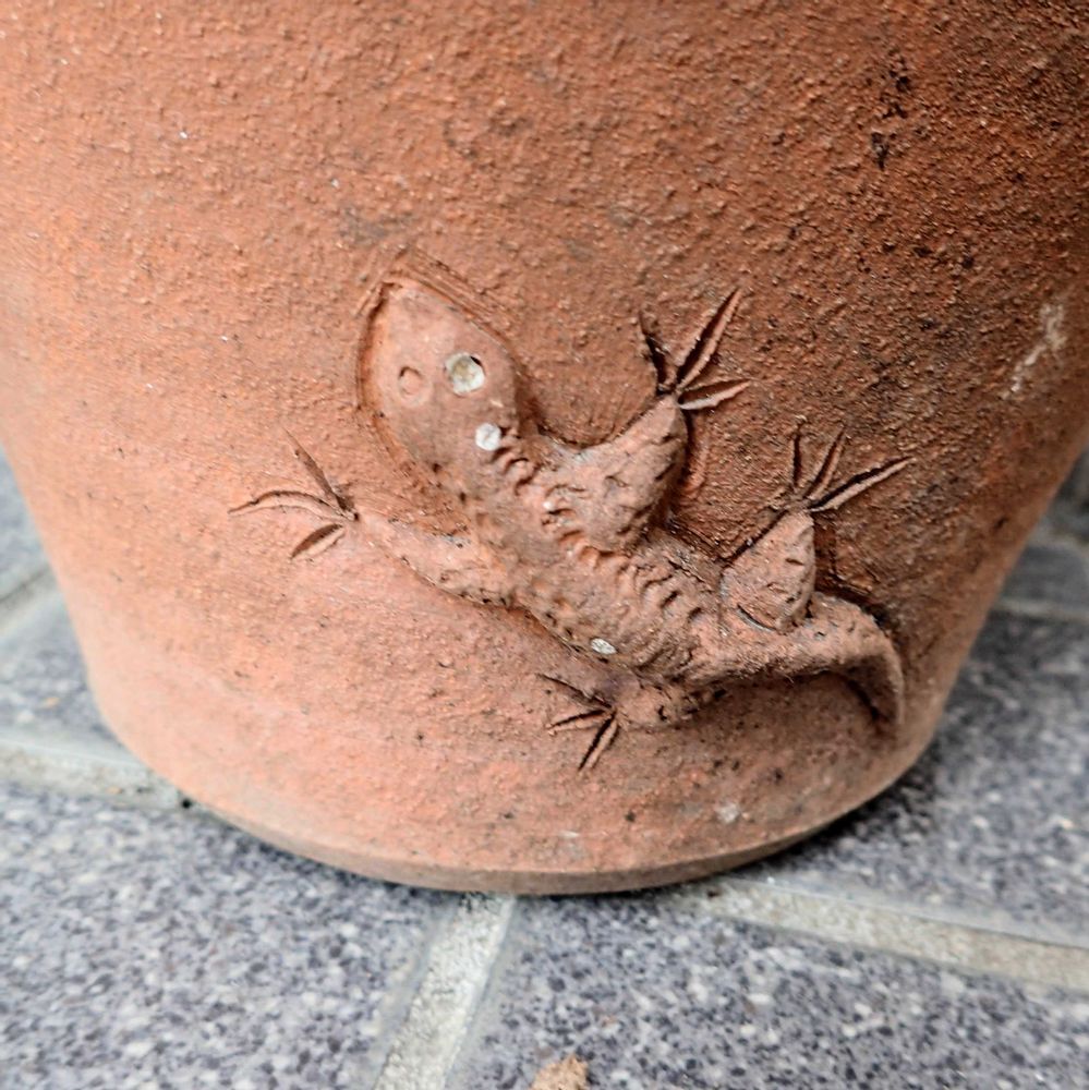 サラマンダーは日本語ではサンショウウオの事で、鉢のレリーフもサンショウウオっぽいですが、もともとは伝説の火竜🐲🔥の事で、このモチーフは家を火事から守るというおまじないがあるそうです😍