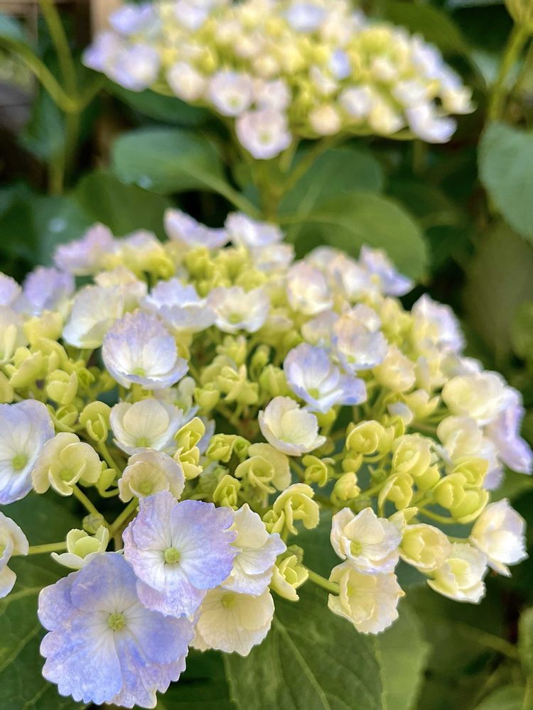 紫陽花💠カメレオンシリーズ・ホバリアホパリーン✨一昨年に強剪定したらイイ感じにまとまってくれました🎵