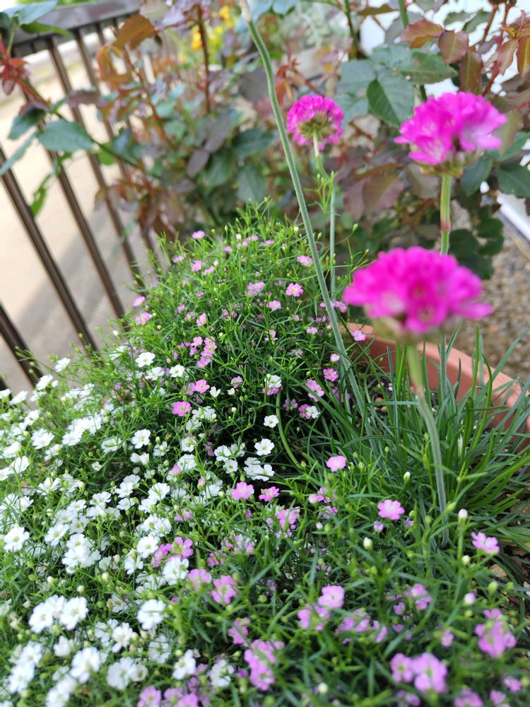 カスミ草とアルメリアの寄せ植え←合わない?カモ😹