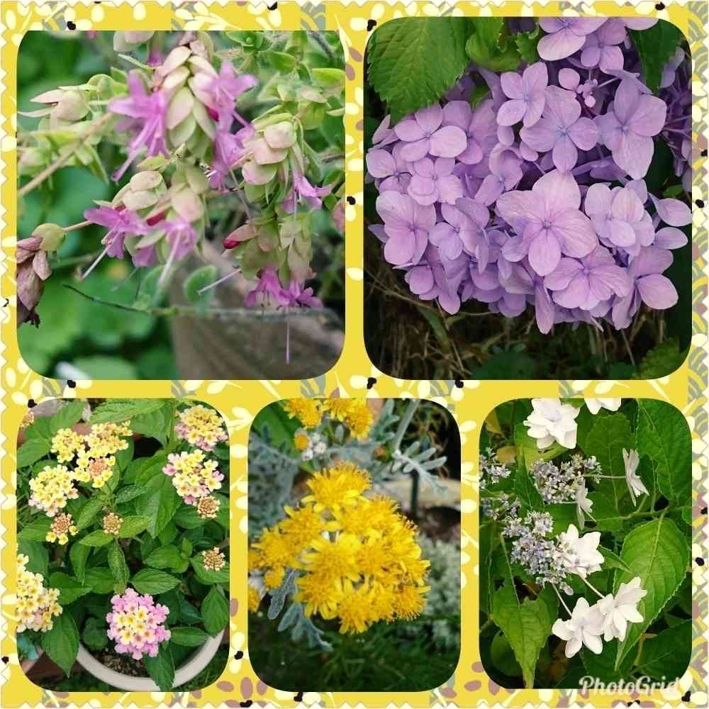 左下の💠ランタナ、シロタエギ ク、紫陽花