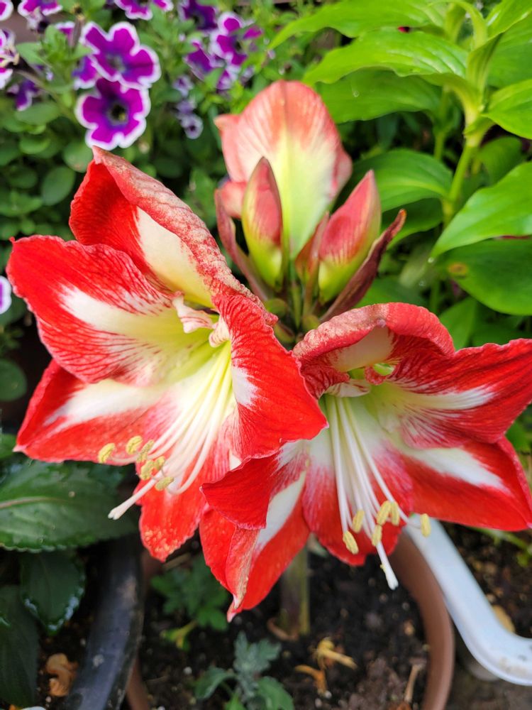 紅白のアマリリスめでたい気分になりますね🤣𐤔