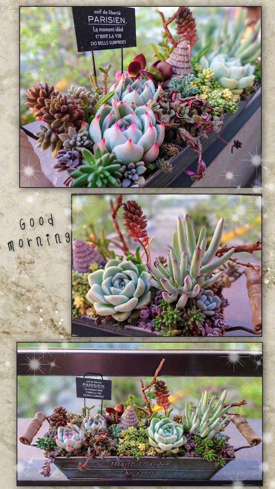 うちもこんな感じの寄せ植えありますよ❗️気が付けば全体的にグリーンでセダムがボーボーになりつつあります😆