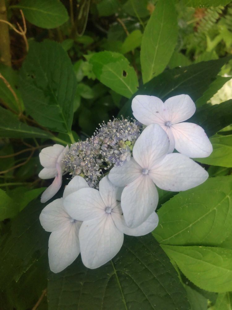 ①②ヤマアジサイの王冠が一輪咲いてくれています