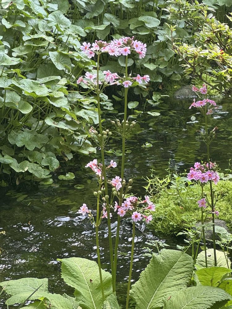 近くまでは行けなかったが、水辺のクリンソウは涼しげ🌿🩵💕🤍