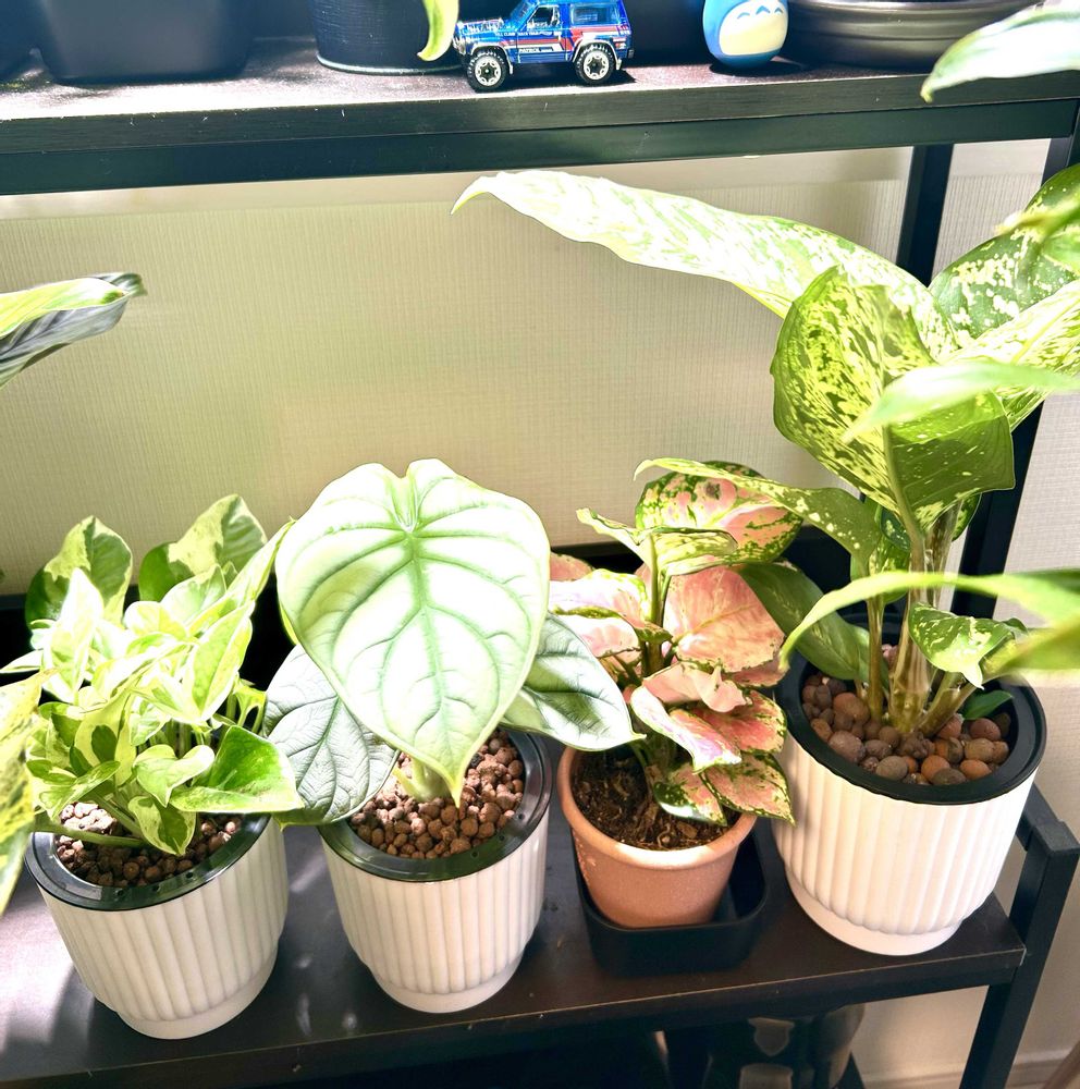 半水耕栽培セミハイドロポニックスチーム😊アロカシアシルバードラゴン🐉も大きな葉っぱが出てきました😊ポトスエンジョイも元気😀