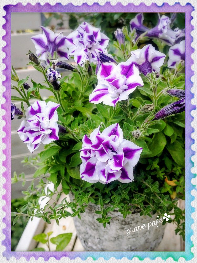 今日も雨が続いています…作業場で避難中のペチュニアをお手入れして撮影してきました👍ペチュニアグレープパフェ🍇🍨ずっとブルーベリーパフェと呼んでいた私🤫早く太陽に当ててあげたいな🙏✨もう少しの辛抱だ〜😙