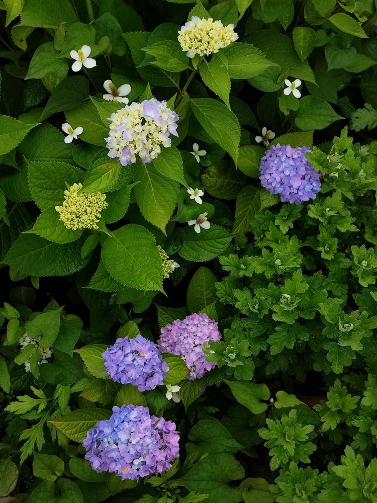 夢かわいいアジサイ、色が濃くなってきました。ピンクとブルーで咲いててキキララ色ですわ。コメリで無名の400円くらいの小さい苗だったはずですが、地植えにしたらどんどこ横に大きくなってくれて、とても気に入っています。