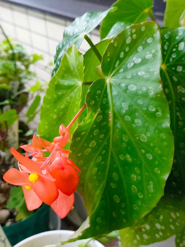 今朝ベランダの木立ベゴニアにお花🧡を見つけました。