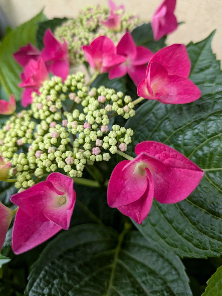 赤いガクアジサイ、綺麗よね。♥️♥️♥️♥️