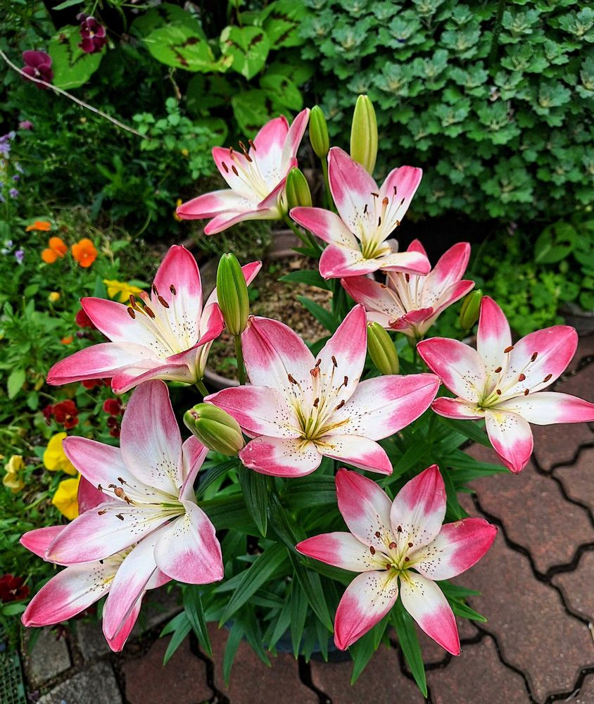 「ロリポップ」の名前のように、可愛いピンクの縁取りのスカシユリ🍭🍭🍭🎶