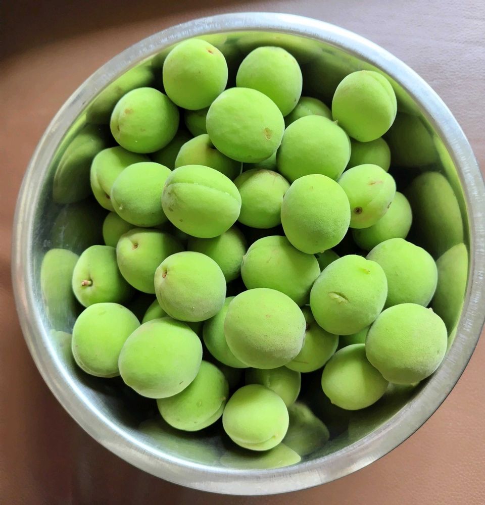 青梅収獲しました。梅干しにしようか、梅ジュースにしようか…