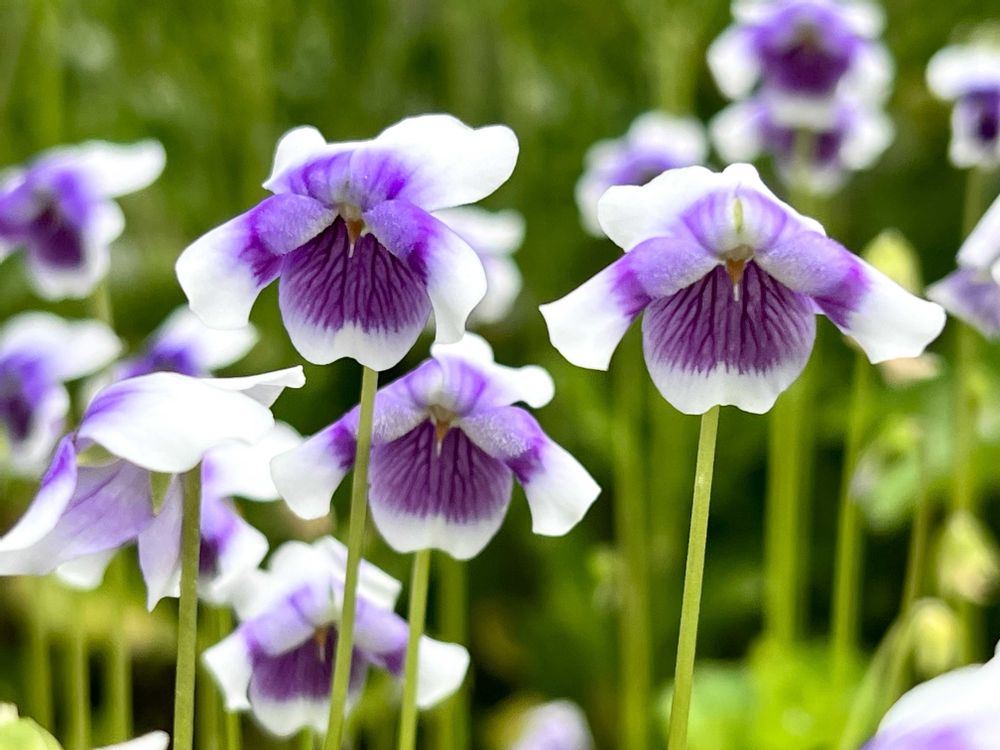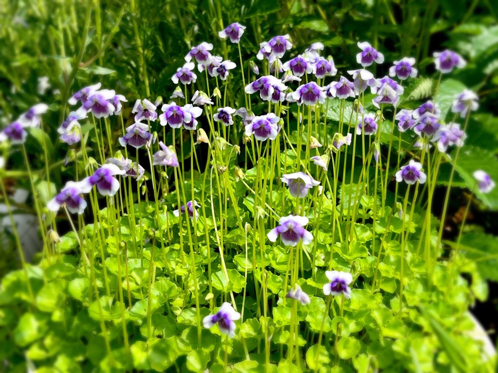 鉢から脱走して地面についた方は、冬は地上部がなくなって絶えたかと思っていると、春になると芽が出てきて咲き始めます。今はポツリポツリ🐼💜