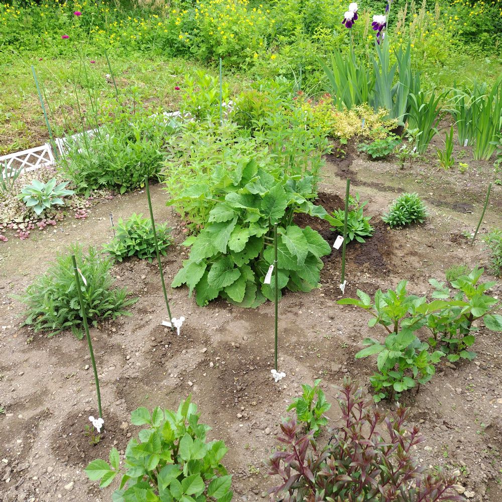 緑の棒が目印のダリアの成長が待たれますね🥹💦