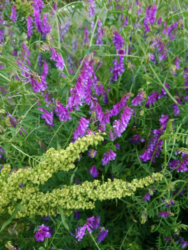 川原のナヨクサフジ💜そろそろ終わりかな〜💜😌今日見たら小さな絹さやみたいなお豆がなっていました🫛