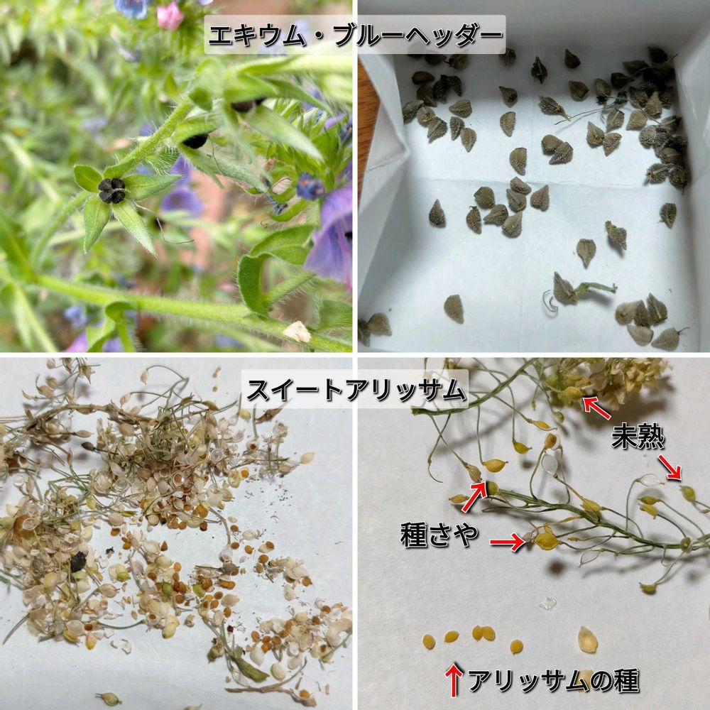 【3枚目】上段、エキウムの種も採れました!😆 こんな感じで黒く熟していたので採種しました。来年はもっとたくさん植えようかな😁