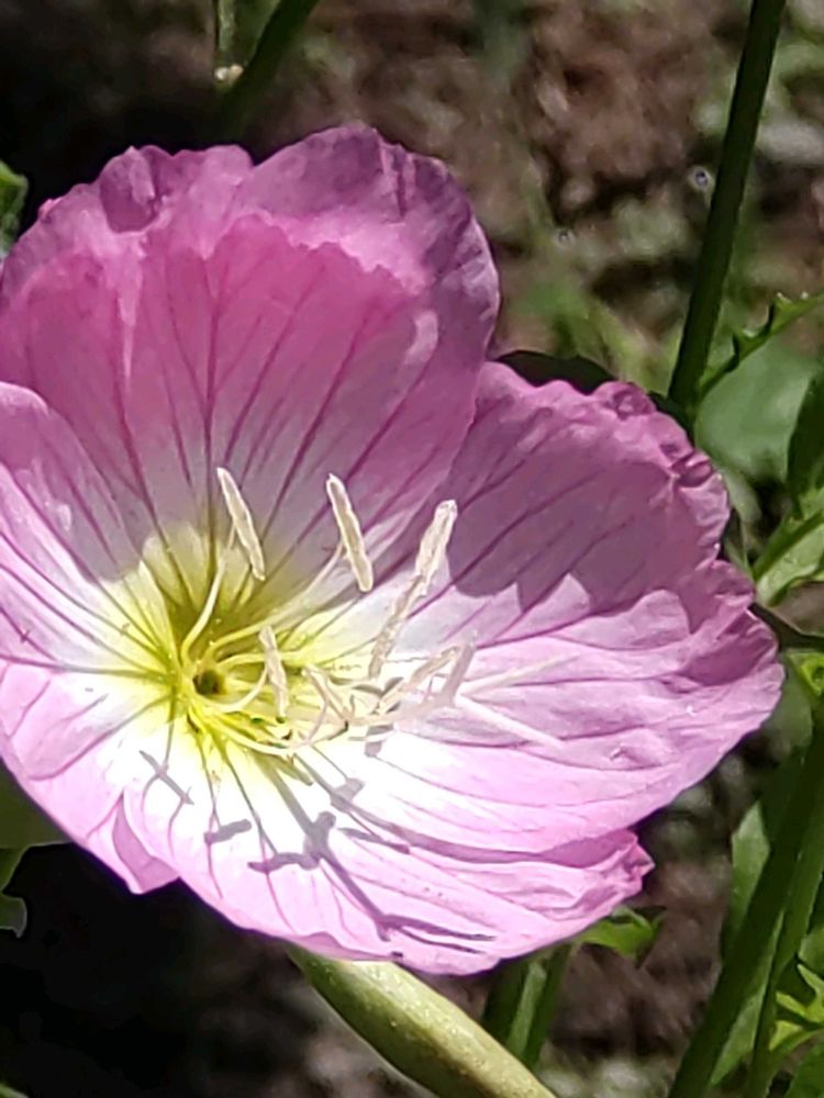 晴れの日……元気よく蕊が太陽の方を向いて色も濃いピンクの化粧ができるお花なんです!