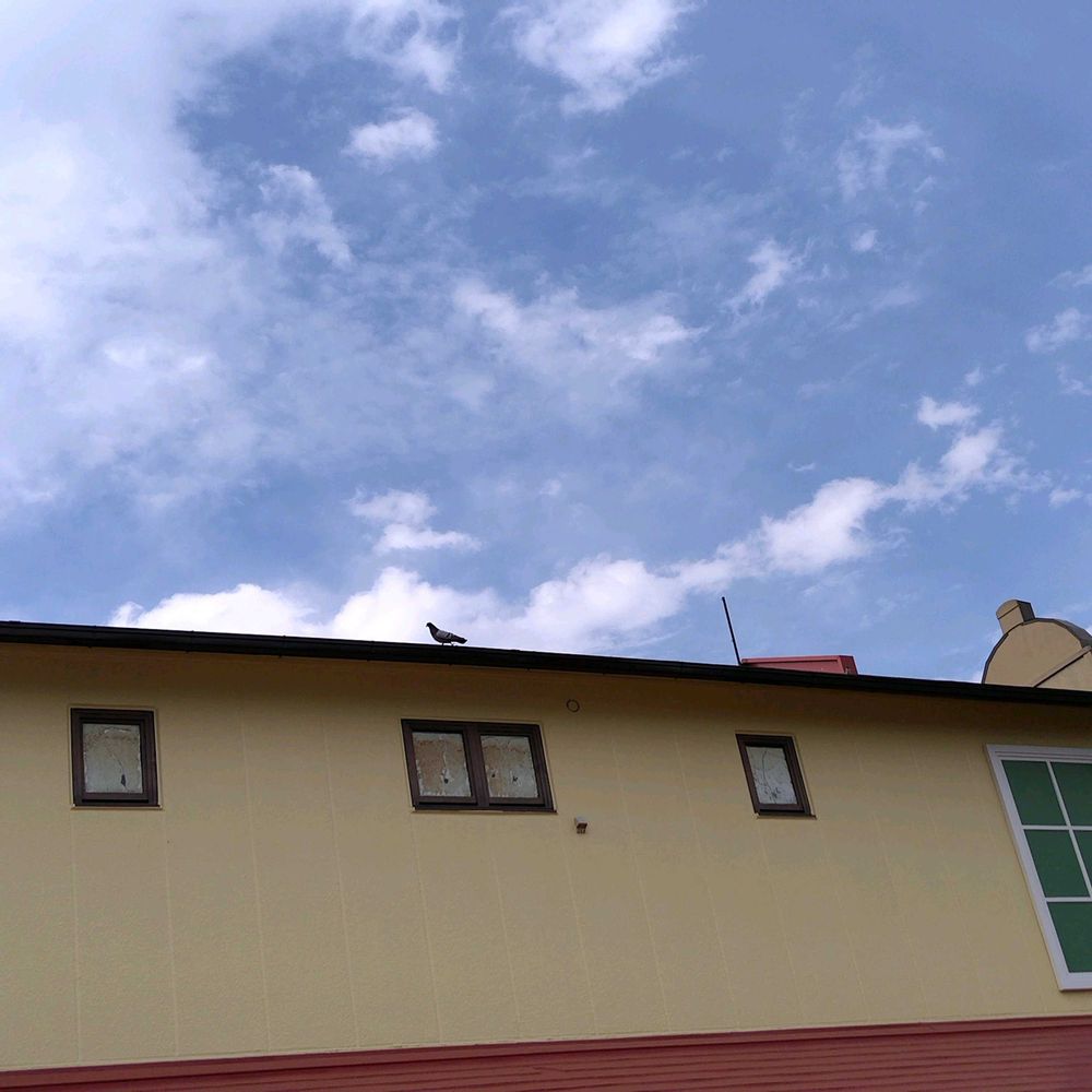 建物の屋根の上!!真ん中に✨️🐦⬛✨️いますょ…